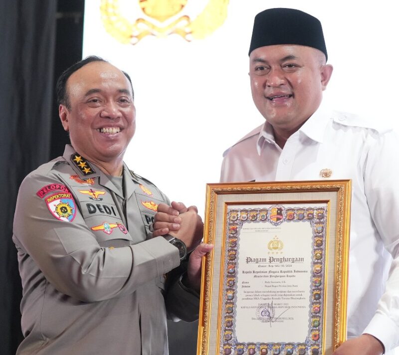 BabeBogor.com – Bupati Bogor, Rudy Susmanto meraih penghargaan dari Kepala Kepolisian Negara Republik Indonesia (Kapolri), Jenderal Polisi Listyo Sigit, Jumat (14/3).